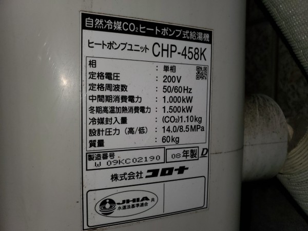 王寺町 コロナエコキュートCHP-458K→コロナ自然冷媒CO2家庭用ヒートポンプ給湯機貯湯ユニットCTU-37AY5K、ヒートポンプユニットCHP-Y454K エコキュート交換工事